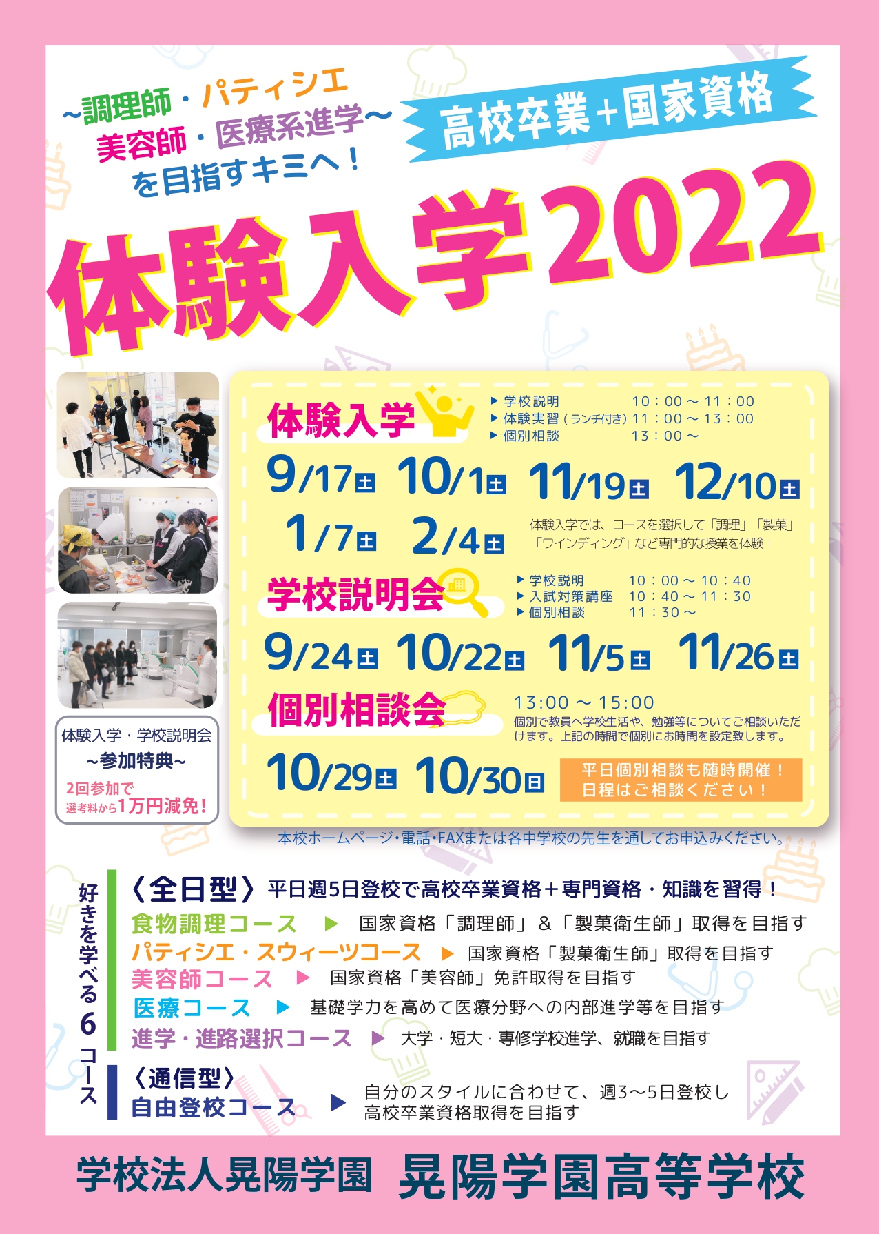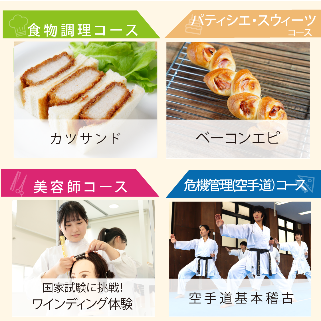 美容師コースや、医療コース、進学進路選択コースでは
