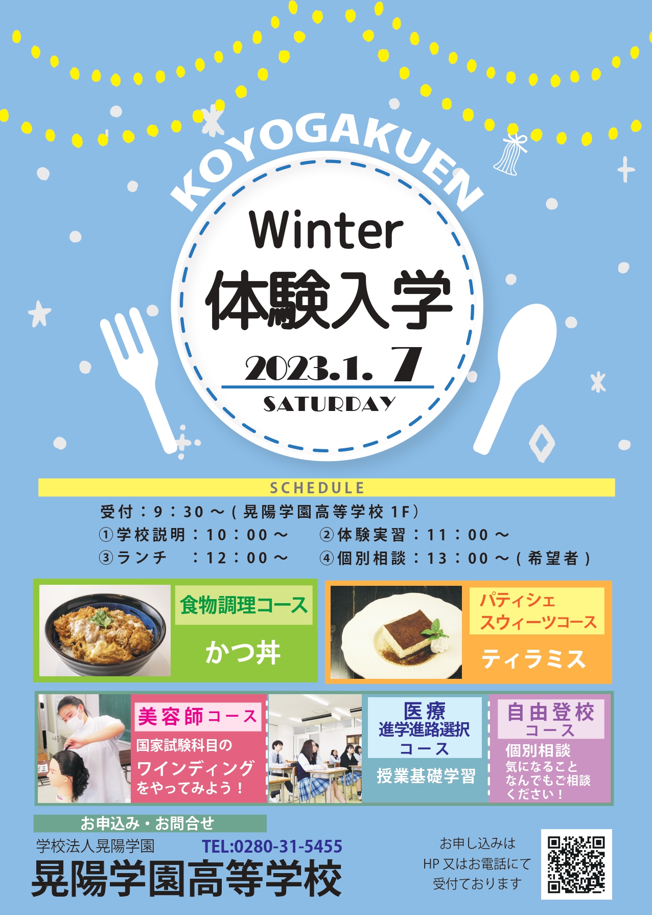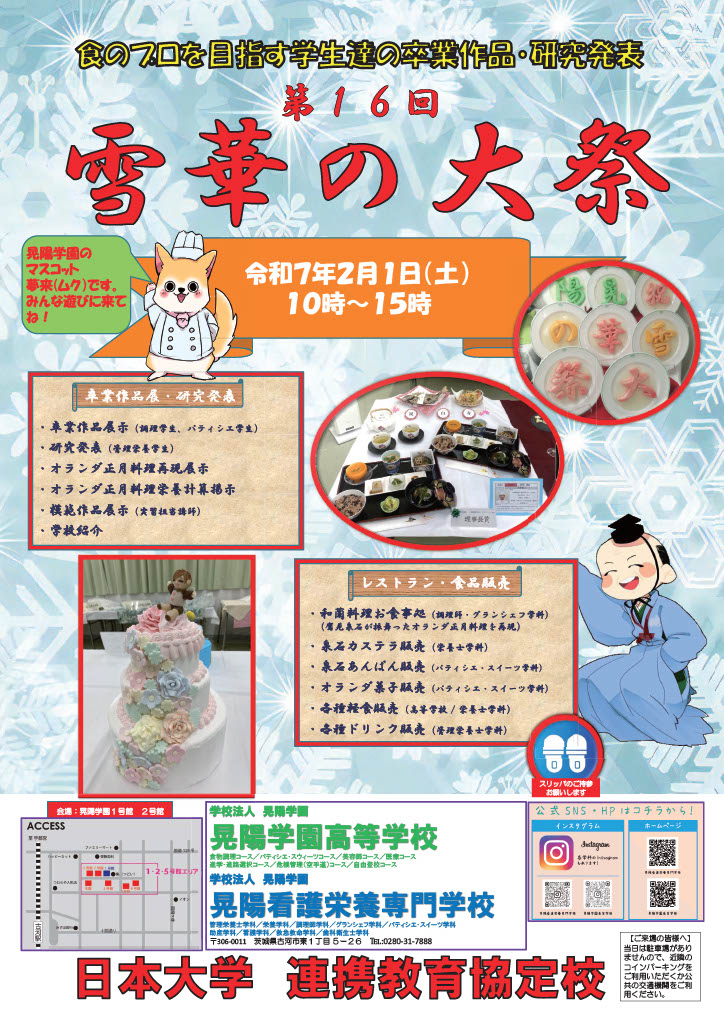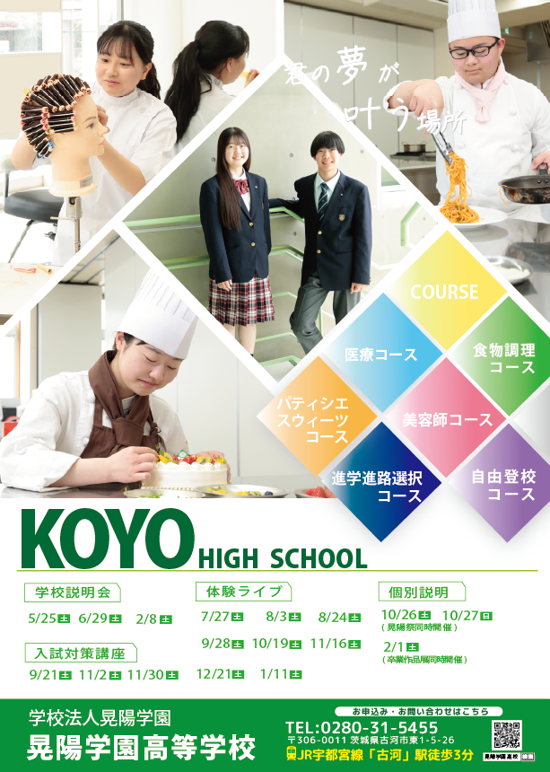 晃陽祭は、晃陽学園高等学校・晃陽看護栄養専門学校の16のコースと学科で