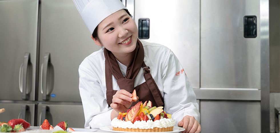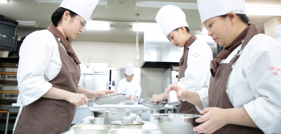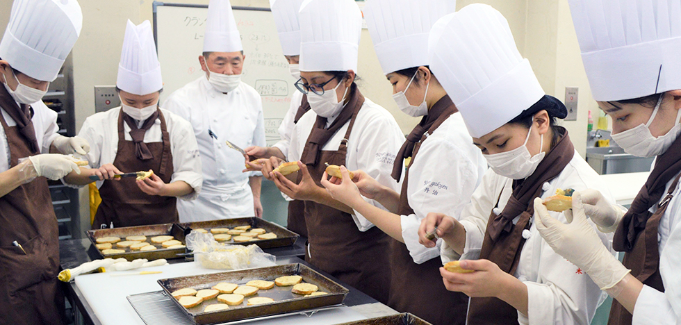 | 菓子作り・パン作りの専門知識を学ぶのが本学科です。単に美味しく作るためのスキルだけでなく、確かな衛生の知識を身につけ、安全なお菓子やパンを作ることができる技術を修得します。お客様へ「美味しさ」と「安心」を届けることができる、パティシエ・ブランジェ・製菓衛生師を育成しています。 |