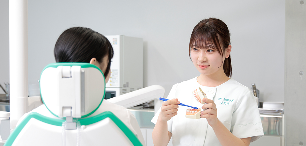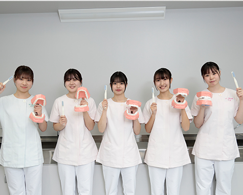 近年、幅広い年代に合わせた口腔ケアのニーズが高まり、歯科衛生士が活躍する場も広がっています。その需要は今後も拡大していくことが予想され、非常に将来性の高い国家資格です。本校では歯科衛生士としての知識や技術、コミュニケーション能力を養い、さまざまなニーズに対応できる歯科衛生士を育成します。