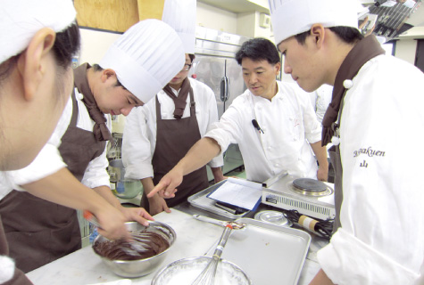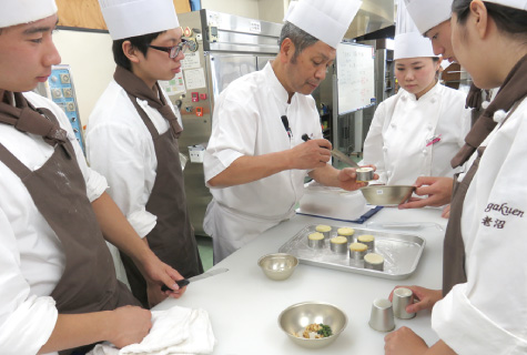 「製菓衛生師」合格をめざすカリキュラム「おいしさ」と「安全」が当たり前に提供できるよう、正しい知識を持ち資格取得をするための学科授業や対策授業に力を入れています。 |