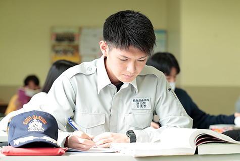 国家試験・公務員試験のW合格をめざす資格取得のための国家試験と、消防職員になるための公務員試験の対策授業に力を入れ学習を進めます。また、消防採用試験に向けた体力錬成や、公務員試験対策授業や課外授業も行いW合格をめざします。 |