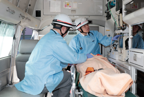 2年次の夏には救急病院での実習と消防署での救急車同乗実習を行います。判断能力・処置技術や医療スタッフとの連携など、200時間に及ぶ臨地実習を通して学びを深めます。